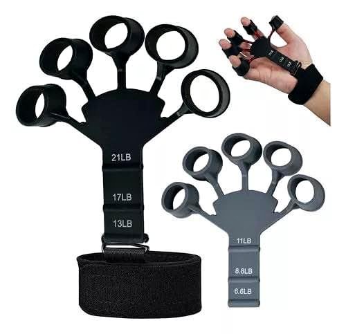 🔥 3 niveles de resistencia para elegir, 13LB, 17LB y 21LB, puede elegir el nivel adecuado según su fuerza de agarre Hecho de material de silicona de dedos de alta calidad, que es seguro y duradero, no es facil de rasgar y se puede usar durante mucho tiempo